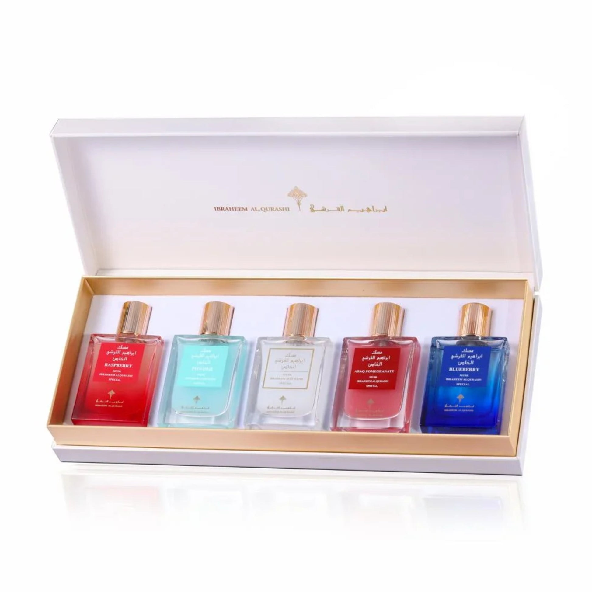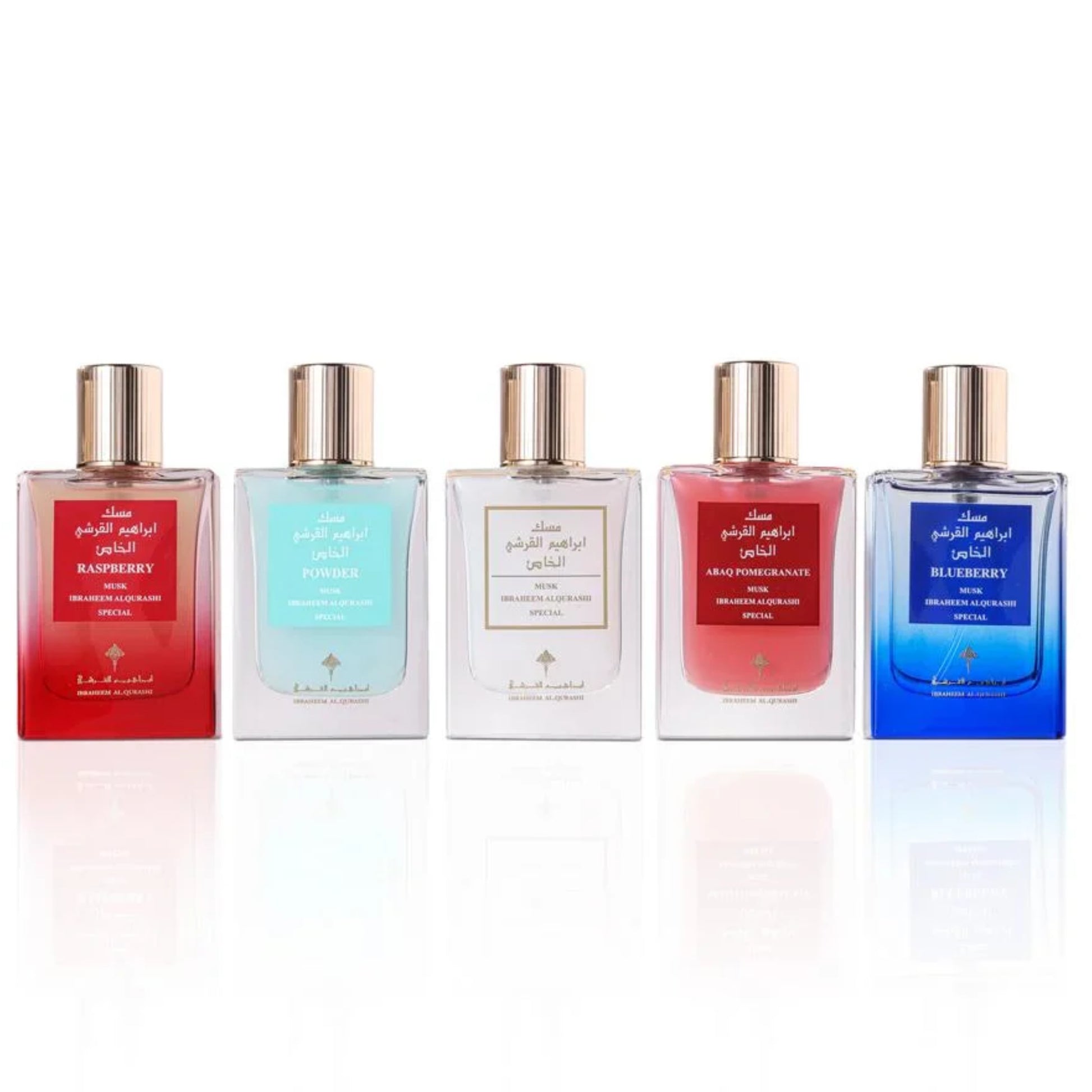 The Musk cuties Collection from Ibrahim Al-Qurashi is a release that redefines luxury with five unique fragrances. Immerse yourself in an experience that takes you on a journey through delicate musky notes and rich fruity aromas, all elegantly packaged for gifting or enhancing your personal perfume collection.